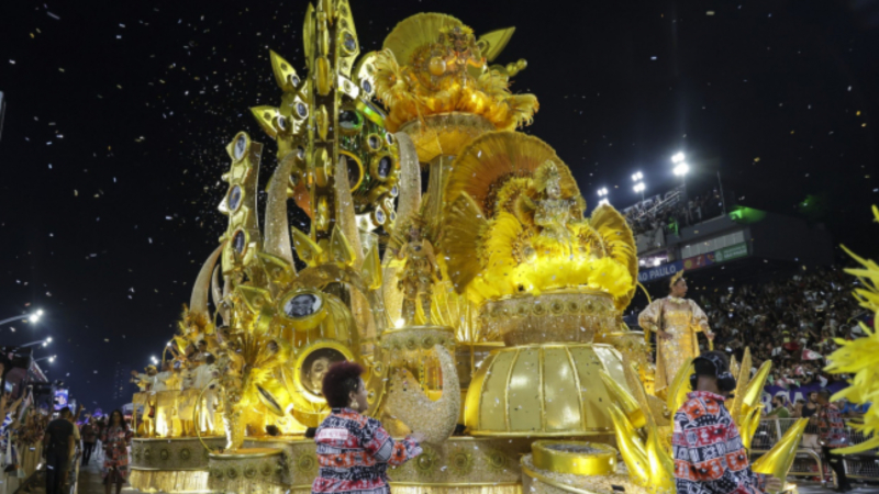 A escola foi a terceira a desfilar no sábado (14). Seus últimos títulos foram uma dobradinha, em 2023 e 2024.